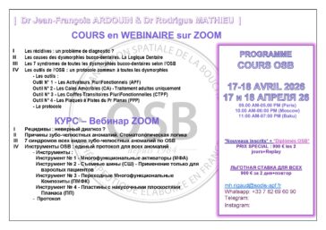 Rejoignez le cours spécial concentré sur 2 jours des Dr Rodrigue Mathieu et Dr Jean-François Ardouin. Un cours consacré aux outils de la thérapeutique OSB afin de prendre en charge vos patients en orthodontie fonctionnelle globale et rétablir durablement l’équilibre buccal de chacun d’entre eux.